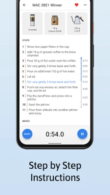 Aeromatic is the ultimate assistant for brewing coffee with your AeroPress. It provides 50 curated recipes from baristas, roasters, and championship winners. Experimenting becomes easy with step-by-step instructions, a built-in stopwatch and video walkthroughs. You can also add notes or try creating your own recipes.