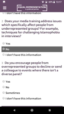 This self-assessment tool is for members of political parties who want to find out how their local, regional, or national party can benefit from increasing the diversity of its members. Focusing on the experiences of women, disabled people, ethnic minorities and the LGBTI community, the tool enables you to assess your current practice across a range of themes. The tool then provides tailored guidance and an action plan of the steps you can take to advance equality and diversity in your activities.