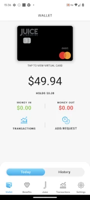 Juice Financial is a financial technology company, not a bank. Banking services are provided by First Century Bank, N.A., Members FDIC, pursuant to a license from Mastercard International. BY USING THIS CARD YOU AGREE WITH THE TERMS AND CONDITIONS OF THE CARDHOLDER AGREEMENT AND FEE SCHEDULE, IF ANY.