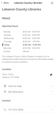 Access Lebanon County Libraries from your Android phone or tablet. Manage your account, search the catalogue, renew and reserve books.