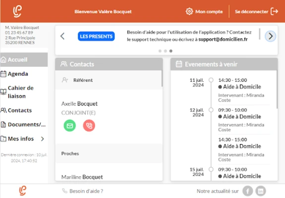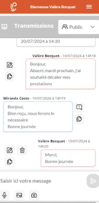 Ainsi, vous et vos proches pouvez consulter l’intégralité des informations et écrire à votre aidant professionnel.