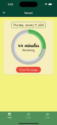 The app provides a timer function to allow the parents to track how much time the child has been patched on a daily basis. It also keeps a historical record of patching times that can be used to help parents stay on track with the minimum recommendations for patching times provided by their children's provider.